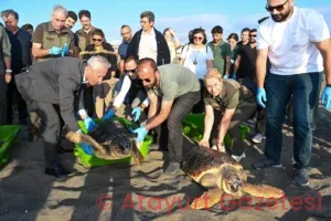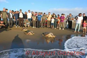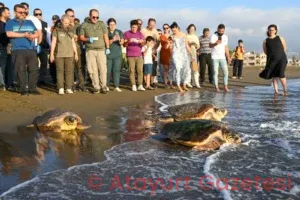 Samandağ sahilinde düzenlenen etkinlikte, çocuklar ve vatandaşlar carettaların denize yolculuğunu ilgiyle takip etti. Katılımcılar, Deniz Kaplumbağalarının korunması için farkındalık oluşturulmasının önemine değindi.