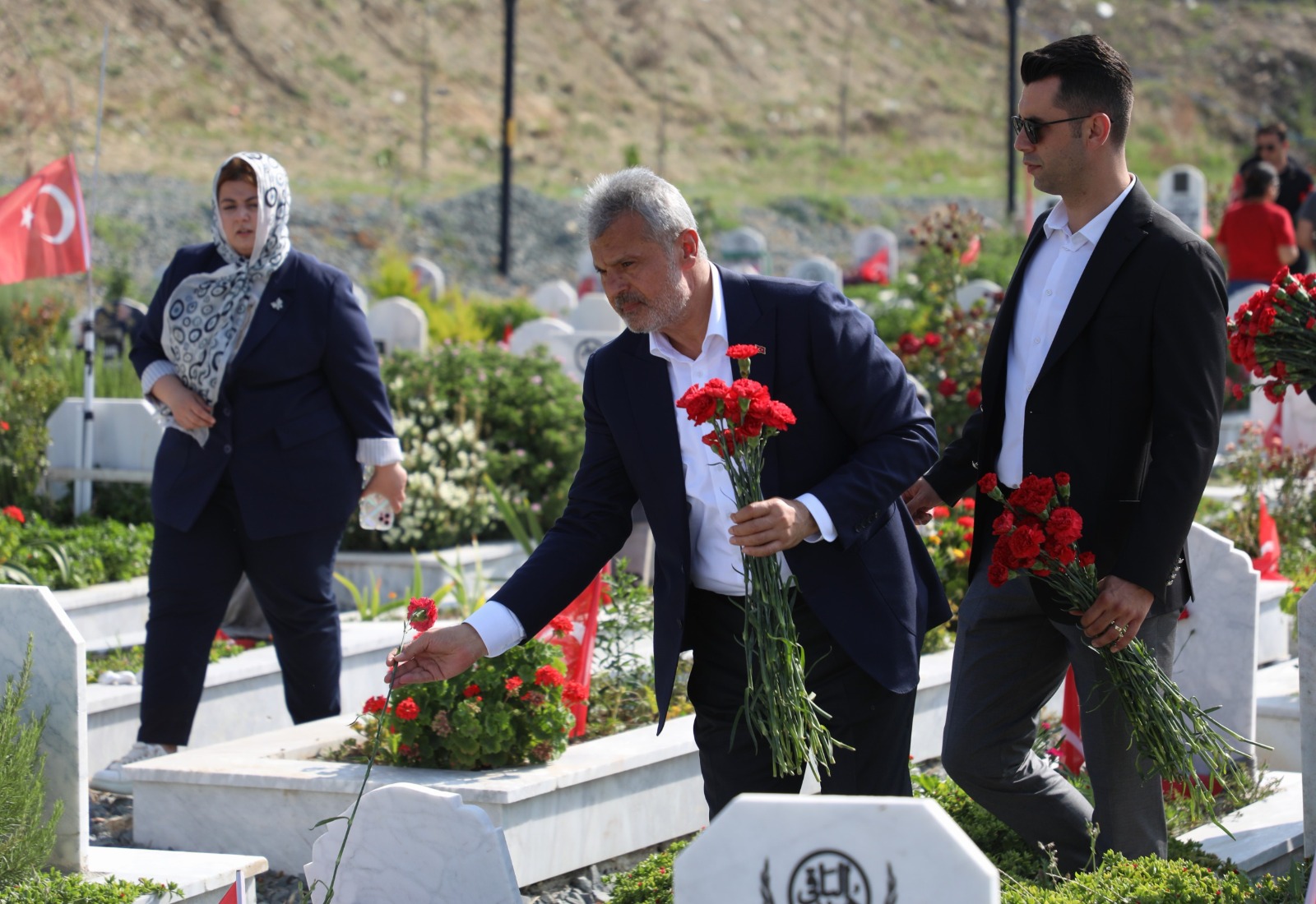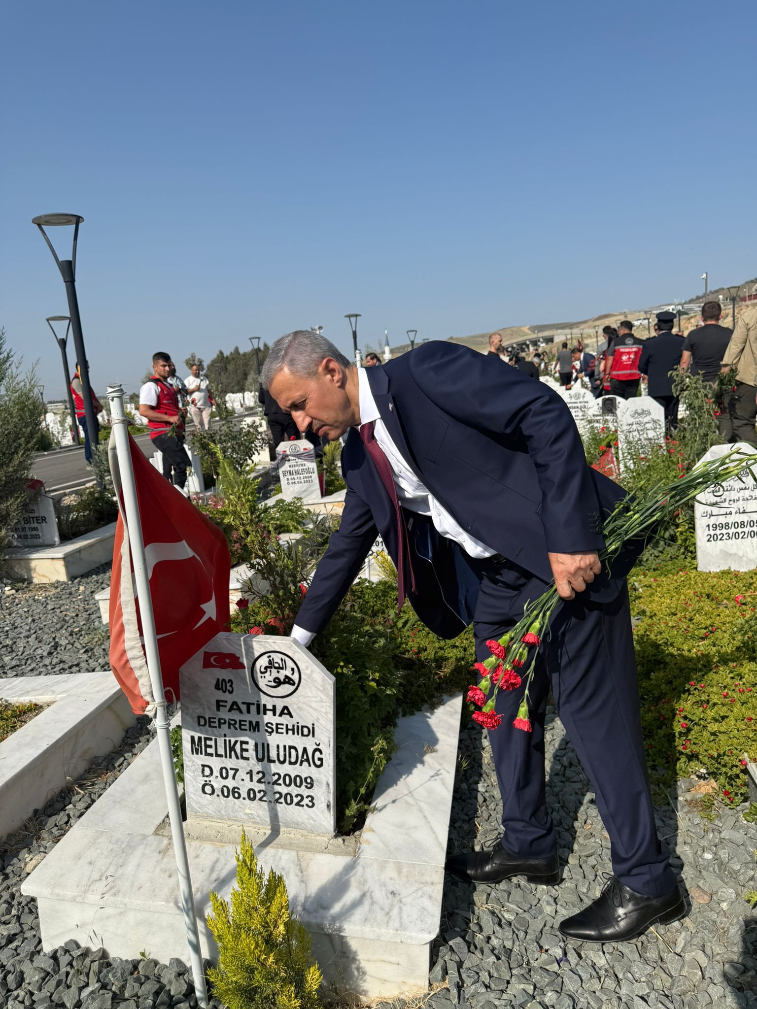 Hatay Büyükşehir Belediye Başkanı Mehmet Öntürk, Kurban Bayramı dolayısıyla Antakya Şehitliği ve Narlıca Deprem Şehitliğini il protokolüyle birlikte ziyaret etti. Başkan Mehmet Öntürk, Hatay Val...