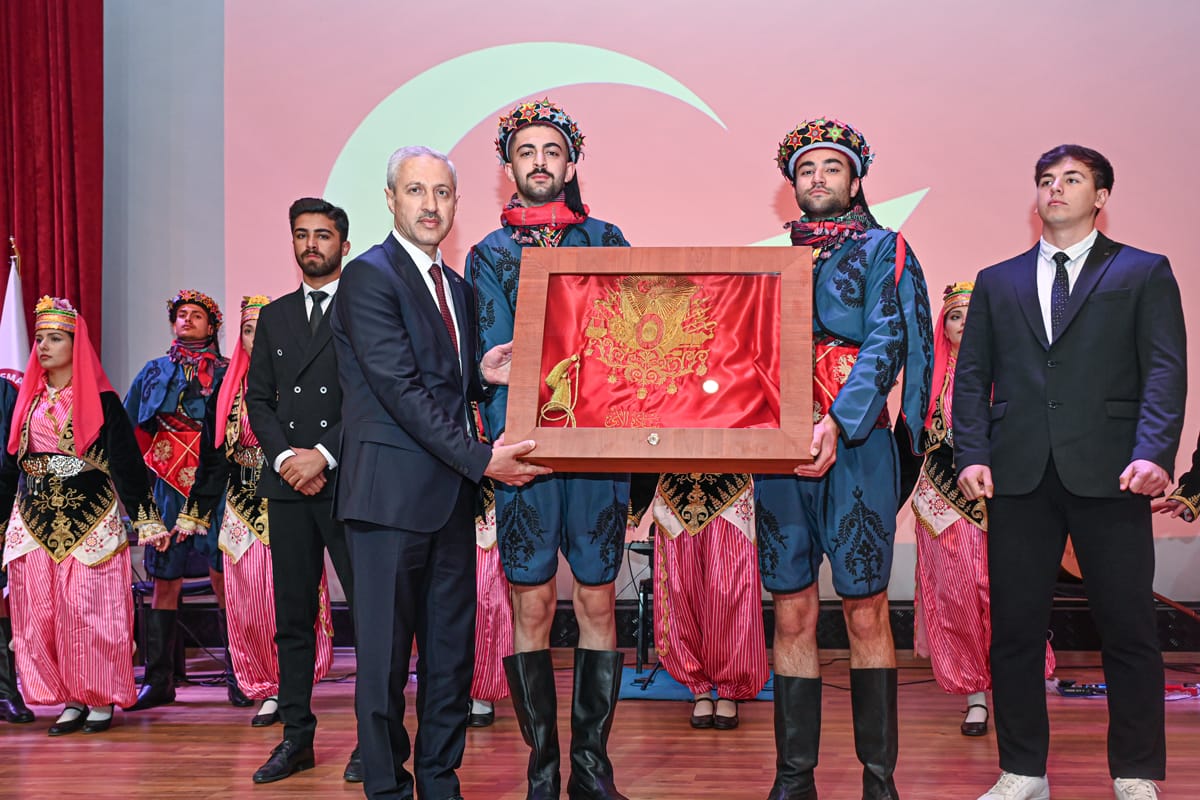 Çanakkale’de gösterdiği kahraman mücadele ile destanlaşan ve tarihe altın harflerle kazınan 57. Piyade Alayı’nın kutsal sancağı Mustafa Kemal Üniversitesi öğrencileri tarafından Atatürk Konferans Salo...