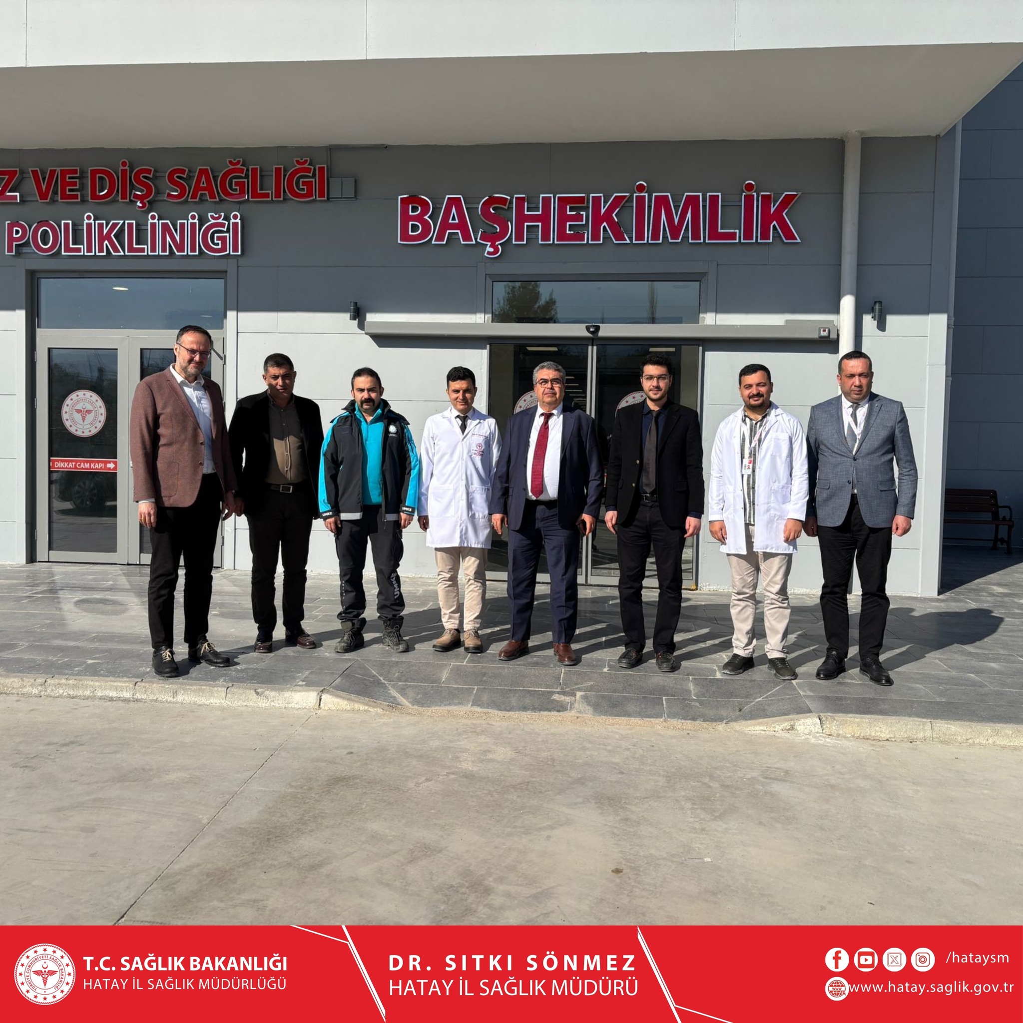 Hatay İl Sağlık Müdürü Dr. Sıtkı Sönmez, Destek Hizmetleri Başkanı Abdullah Denizoğlu, Acil Sağlık Hizmetleri Başkanı Dr. Süleyman Balakan ve Kamu Hizmetleri Başkanı Dr. Selçuk Öntürk ile birlikte Erz...
