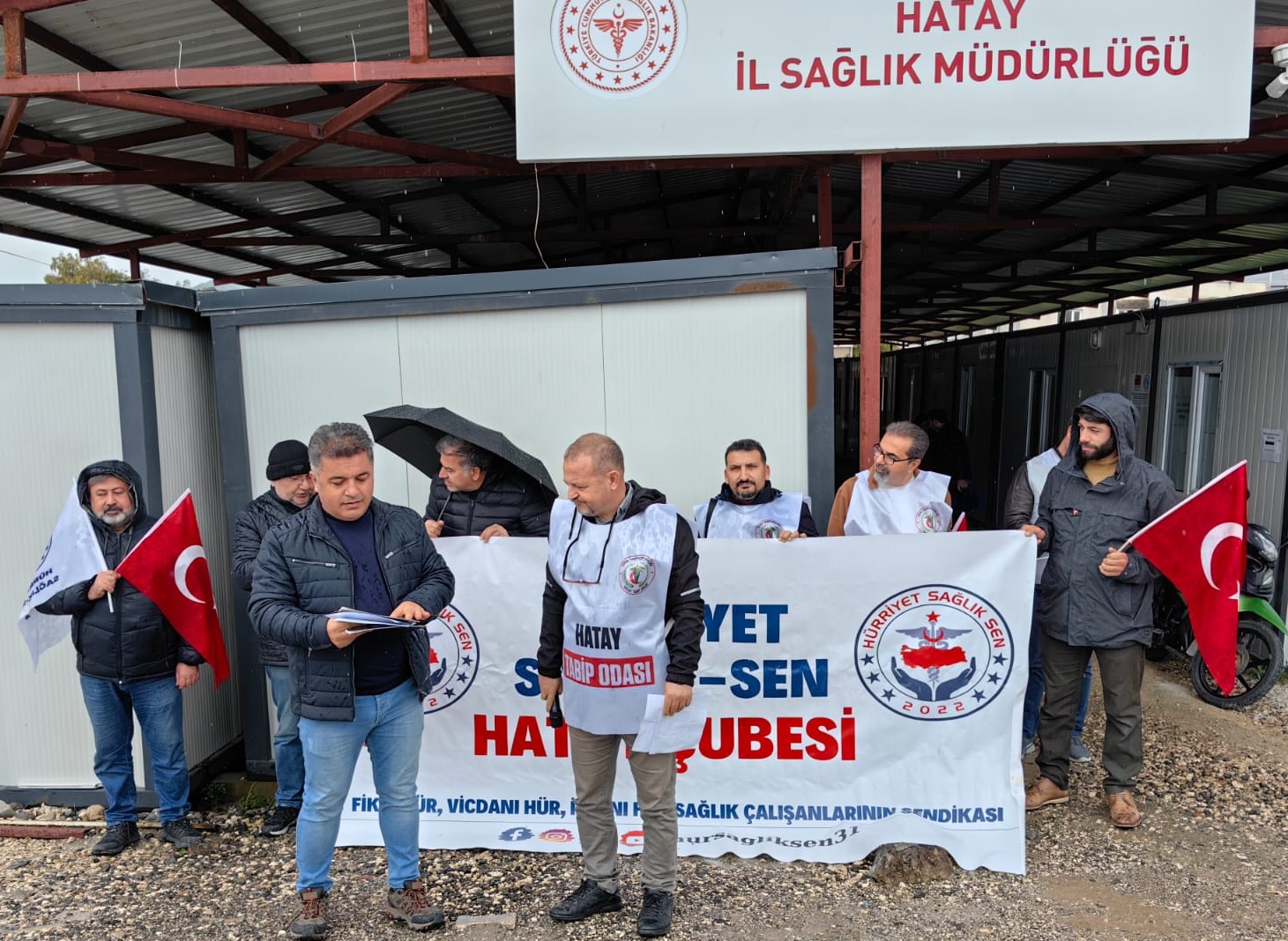 Hürriyet Sağlık-Sen Tüm Deprem Bölgesinde ve Ayrıca Hatay Tabip Odası ile Birlikte Ortak Bir Kararla Hatay’da 1 Günlük İş Bıraktı. İş bırakma eylemine ilişkin Hatay İl Sağlık Müdürlüğü önünde Hürriyet...