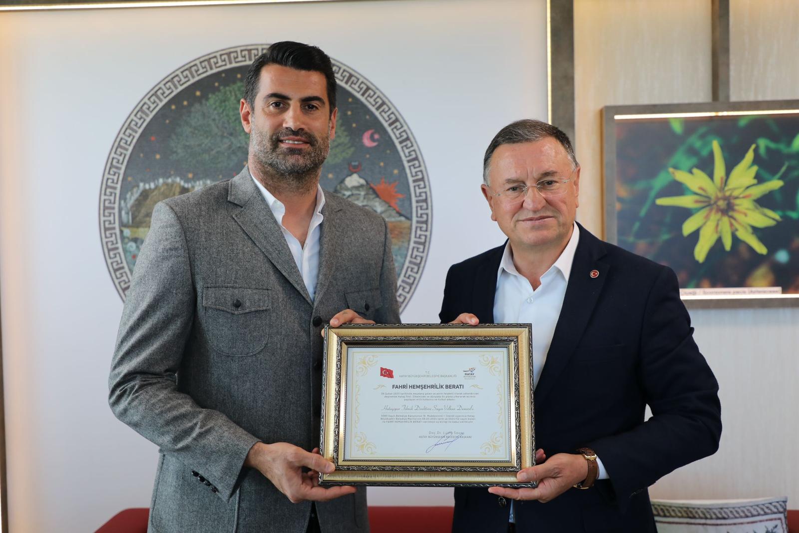 Hatay Büyükşehir Belediye Başkanı Doç. Dr. Lütfü Savaş tarafından Hatayspor Teknik Direktörü Volkan Demirel’e fahri hemşehrilik payesi ve beratı takdim edildi. 6 Şubat Depremi sonrasında Hatay’ı...