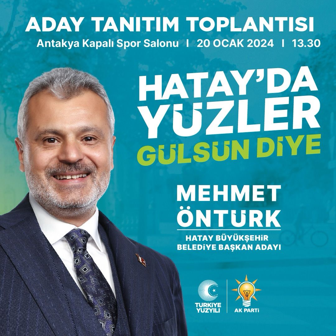 Cumhur Ittifaki Hatay Büyükşehir Belediye Başkan Adayı Mehmet Öntürk için tanıtım toplantısı düzenlendi. Cumhur ittifakı Hatay Büyükşehir Belediye Başkan adayı Mehmet Öntürk’ün tanıtım toplantıs...