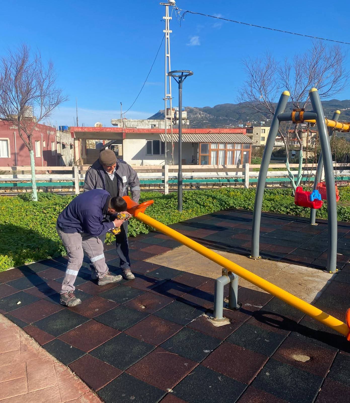 Öte yandan parklarda bulunan yıpranmış oyun gruplarında bakım ve onarım çalışmaları yapılarak çocuklar için daha güvenli oyun alanları oluşturuluyor. Park ve refüjlerdeki ağaçların olumsuz hava koşullarından etkilenmemesi amacıyla herek bağlama çalışmaları da ekipler tarafından sürdürülüyor.