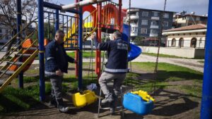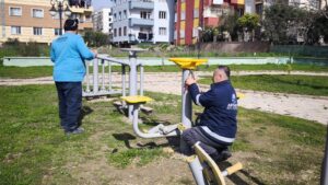 Altınçay Mahallesi’nde bulunan parkta spor aletleri, oyun grubu ve aydınlatma direklerinin bakım ve onarım çalışmaları.