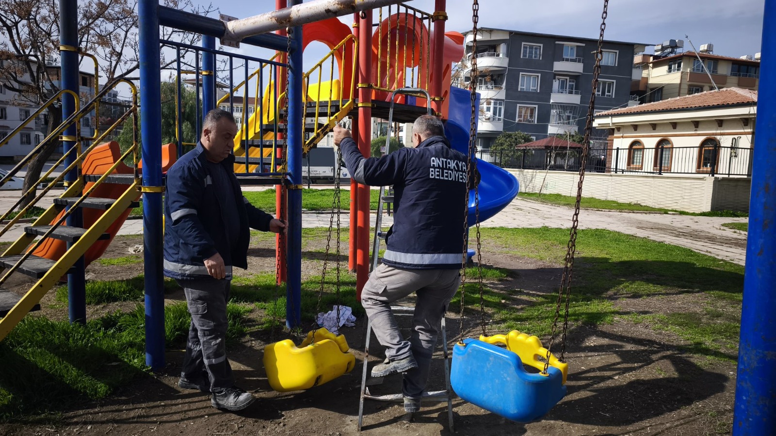 Antakya Belediyesi Park ve Bahçeler Müdürlüğü ekipleri, Antakya’nın 95 Mahallesi’nde bulunan parklarda çalışmalarını sürdürüyor.