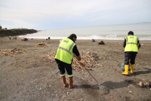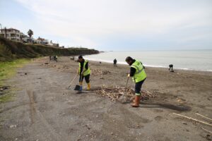 Sağanak yağmurun etkisiyle Payas ve Arsuz Sahiline derelerden deşarj olan ve biriken katı atıkları temizleyen Hatay Büyükşehir Belediyesi ekipleri, çevre kirliliğinin önüne geçmek adına yaptığı çalışmalarda 105 ton civarında katı atığın temizlenmesini sağladı.