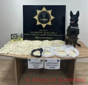 Hatay Valiliğinden verilen bilgiye göre, Hatay Emniyet Müdürlüğü görevlilerince Uyuşturucu İmal ve Ticaretine yönelik yapılan çalışmalar kapsamında M.R.’nin Reyhanlı’da bulunan ikametinde yapılan aramada; 10 kilogram, 60.000 adet captagon ele geçirildiği belirtildi.