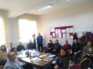 İlçe milli eğitim ziyaretimizde eğitim emekçileri ile sohbetin ardından personelden sorumlu şube müdür ile hem okul gezilerimizden tarafımıza yansıyanları paylaştık hem de yeni taşındıkları bina için hayırlı olsun temennisinde bulunduk. Diğer şube müdürleri ile de selamlaştık.