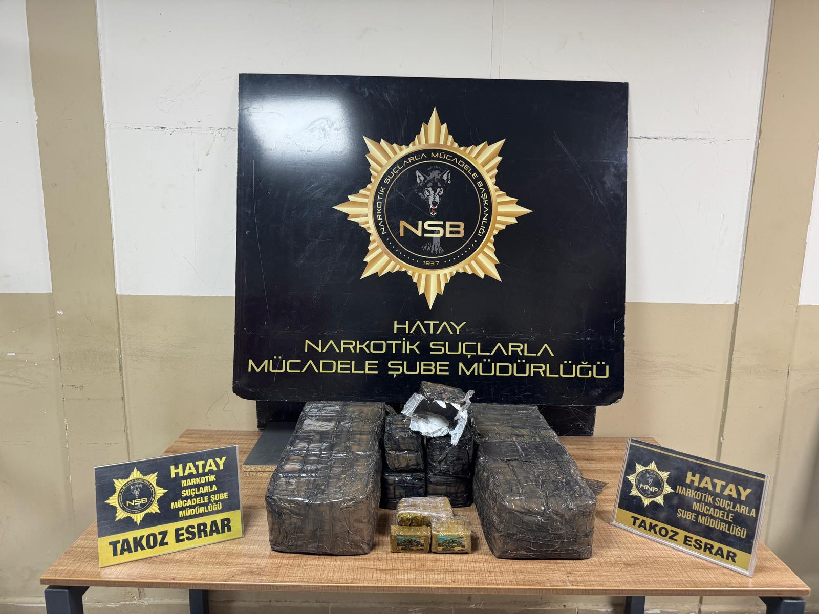 Hatay Valiliğinden konuya ilişkin yapılan açıklamada, Hatay Emniyet Müdürlüğü görevlilerince, uyuşturucu madde kullanımının ve ticaretinin önlenmesine yönelik yürütülen çalışmalar kapsamında; 01.04.2026 günü Samandağ ilçesinde ihbar edilen adrese gidilerek, sahile vurmuş çuval içerisinde 36 kilogram takoz esrar ele geçirildiği ifade edildi.