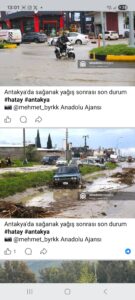 Sosyal Medyadan yapılan paylaşımlarda, aşırı yağışların hem Samandağ hem de Reyhanlı’da yolları derelere çevirdikleri ve birçok yerde sel baskınları yaşandığı kaydedildi.