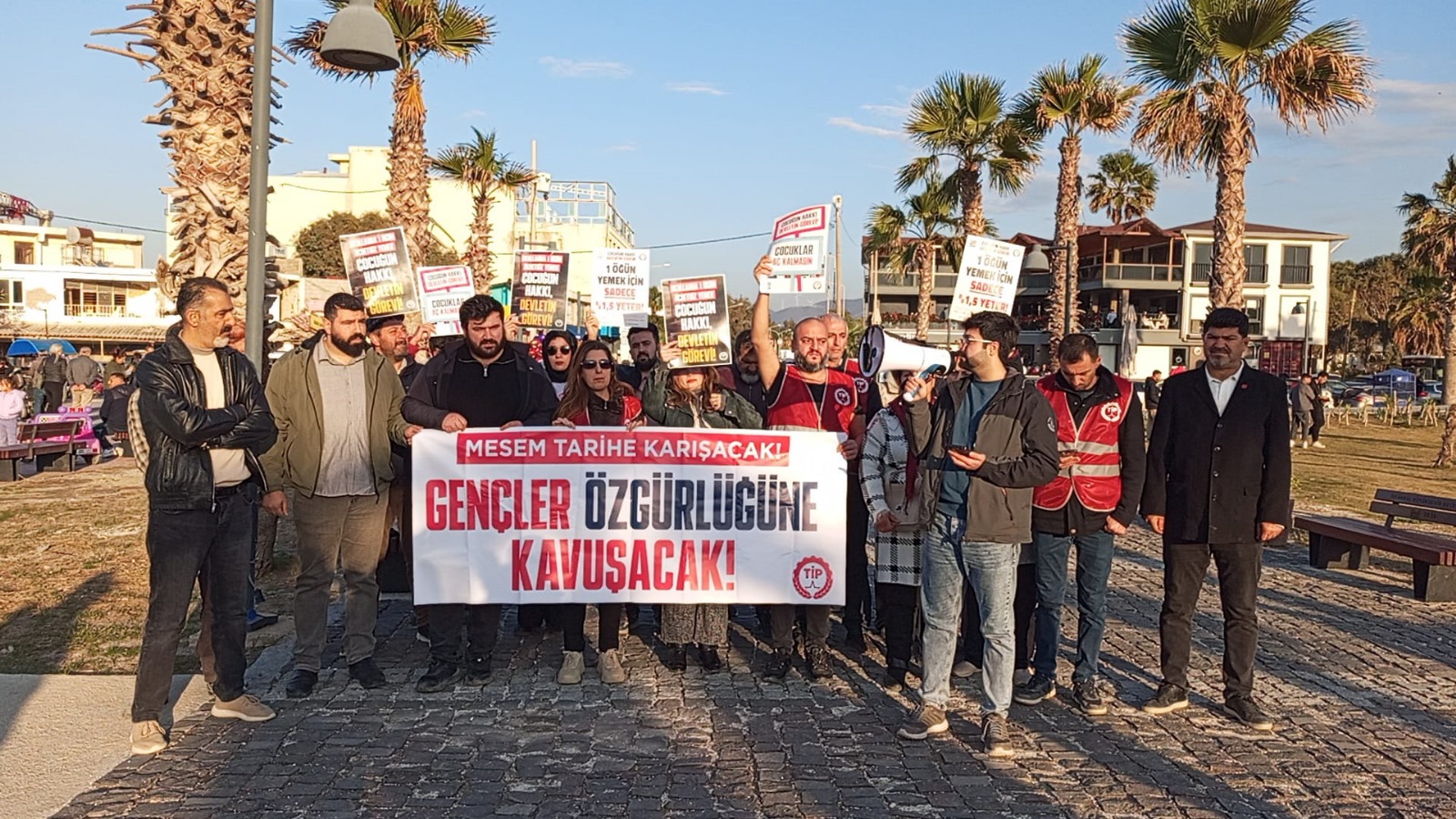 Bunun yanı sıra, MESEM’de 15-16 yaşlarındaki çocuklar adeta ucuz iş gücü, köle düzeninin birer çarkı haline getirilip çalıştırıldıkları yerlerde ölüme mahkûm ediliyor. Bu katliamları protesto eden TİP’li 16 genç yoldaşımız bırakılana kadar, MESEM denen ucube sistem kaldırılana kadar, çocuklara 1 öğün ücretsiz yemek verilene kadar Türkiye’nin her yerinden bu taleplerimizi haykıracağız!” dedi.