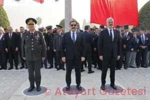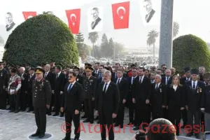 Törene Hatay Valisi Mustafa Masatlı, Hatay Büyükşehir Başkanı Mehmet Öntürk, Garnizon Komutanı Tuğgeneral Ali Mete ve il protokolü katılım sağlarken Başkan Mehmet Öntürk ile Vali Mustafa Masatlı ve Garnizon Komutanı Tuğgeneral Ali Mete tarafından Atatürk Anıtı’na çelenk sunuldu.