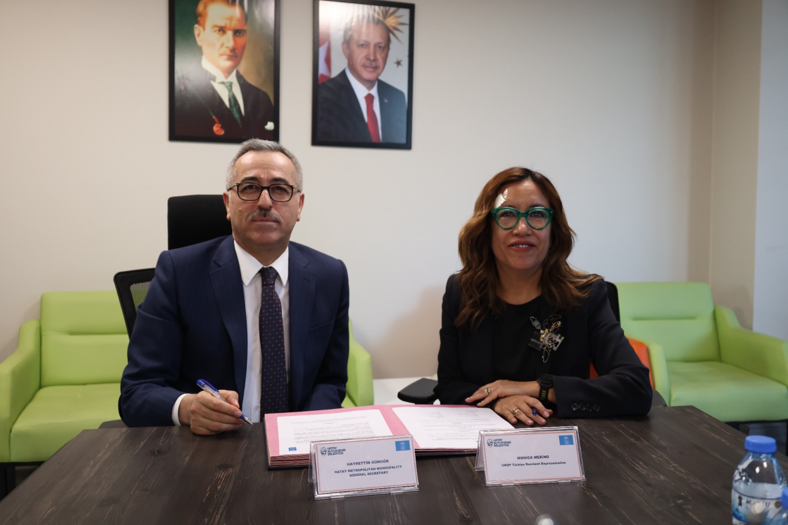 Hatay’da kırsal kalkınmayı teşvik etmeyi amaçlayan Yarının Köyleri Projesi (Kapsayıcı Büyümeyi Artırmak için Dijital Köyler Girişimi) kapsamında Hatay Büyükşehir Belediyesi  Genel Sekreteri Hayrettin Güngör ile UNDP (Birleşmiş Milletler Kalkınma Programı) Türkiye Mükim Temsilcisi Monica Merino Dominguez arasında imzalar atıldı.