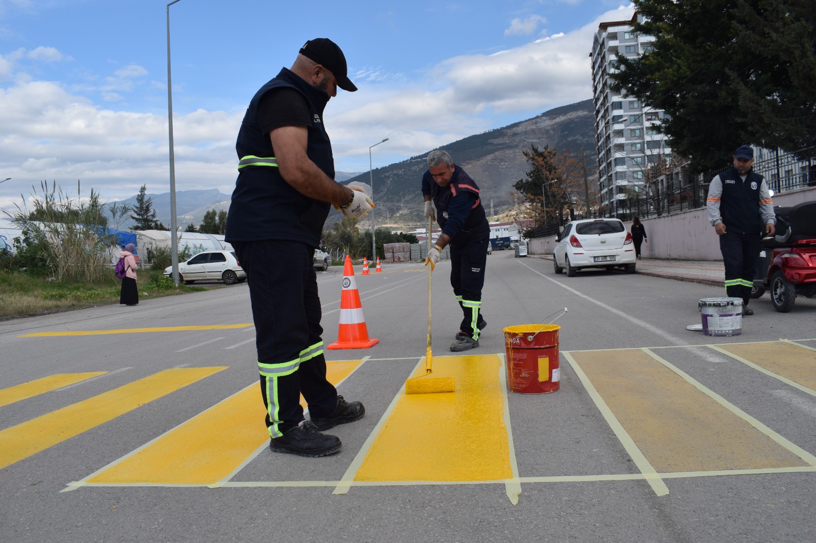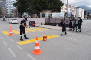 İskenderun ilçesinde yapılan çalışmalar kapsamında bilgi veren Hatay Büyükşehir Belediyesi, okul çevresinde trafik güvenliğini sağlamak amacıyla gerekli olan uyarıcı levhaların montajlarının yapıldığını ve yaya geçitlerinin yeniden boyandığını aktardı.
