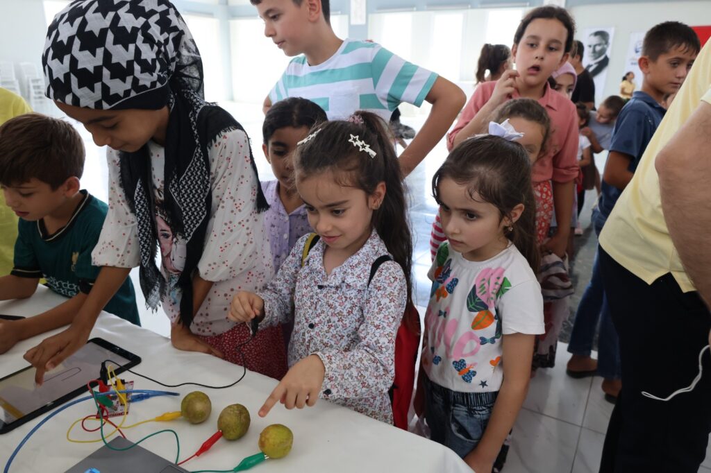 Çocuklar, VR gözlük deneyimi, yapay zekâ uygulamaları, kitap ayracı tasarımı, tohum topu üretiminin yanı sıra rüzgârgülü ve su filtresi yapımı atölyeleri ile bilimin eğlenceli yönünü keşfederken palyaço gösterileri ve yüz boyama etkinlikleri ile de doyasıya keyifli saatler geçiriyor.